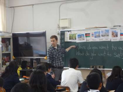 「どこへ行きたいですか?」「何を見たいですか?」「何を食べたいですか?」などの表現を学びました。