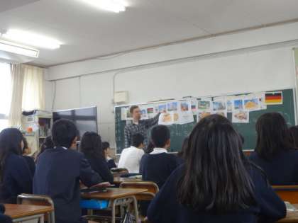 ダニエル先生は、外国の名所や民族料理をカラーで印刷してきて、その写真を見せながら説明してくれました。