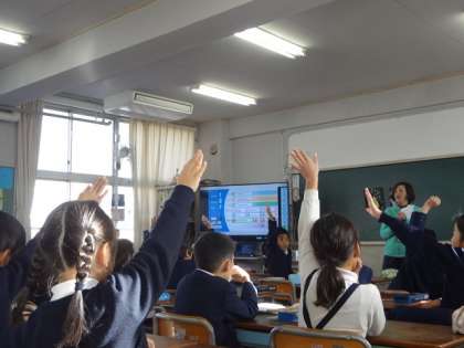 何度も何度も同じフレーズを聞くことで、子どもたちの耳は英語の音に慣れてきています。