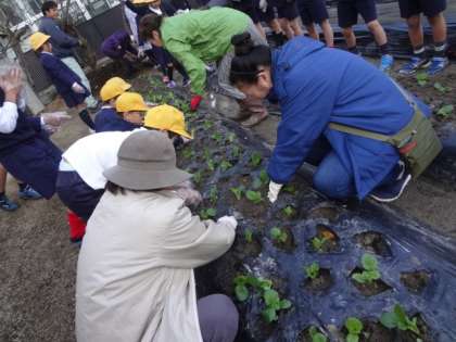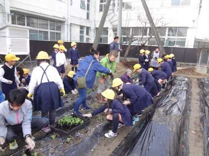3年生が地域の方々と長原ガーデンに“菜の花”を植えました。