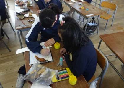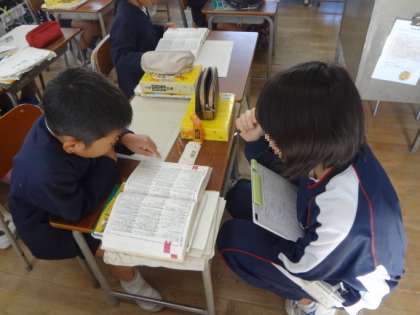 中学生たちは、図工や国語辞典ひきの手助けしたり、体育の授業の補助をしたりと、小学校の先生の様々な仕事を体験しました。昼休みには、子どもたちと運動場で遊んでくれました。