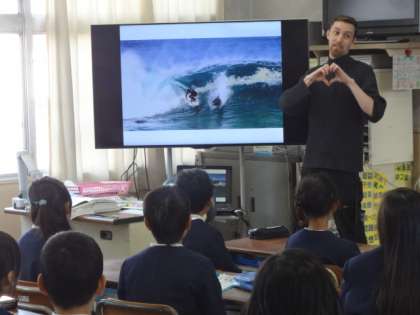ダン先生の生まれ故郷の様子を、スライドを交えて英語で紹介してくださいました。