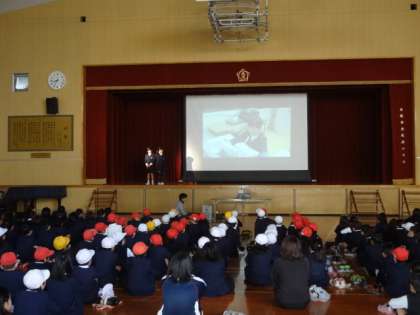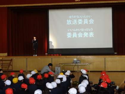 ビデオを使って日頃の放送の様子を見せたり、クイズ形式で委員会の紹介をしたりしていました。