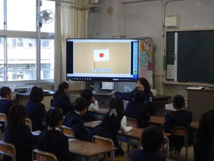 2年生は映像に合わせて、体を左右にゆさぶり、リズムをとっています。