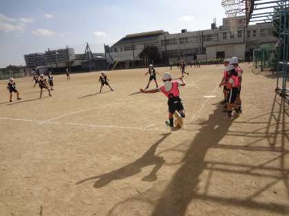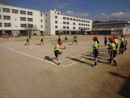 昼は比較的温かでした。3年生がキックベースボールをしていました。