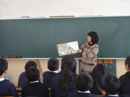 平野図書館のボランティアの方が来てくださり、絵本の読み聞かせをしてくださいました。