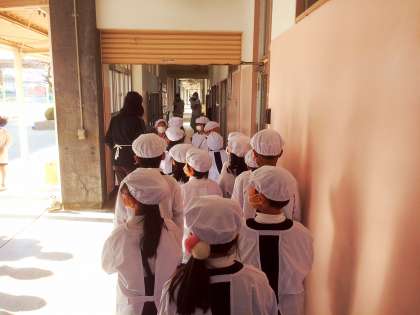 「2学期ありがとうございました!」という声が、給食室前の廊下に響きました。