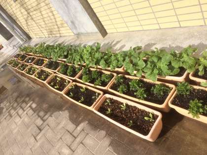 12月7日に長吉中学・職場体験の生徒たちが植えてくれた草花が、寒さにも負けずに成長しています。