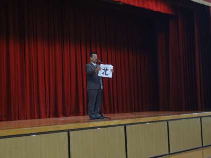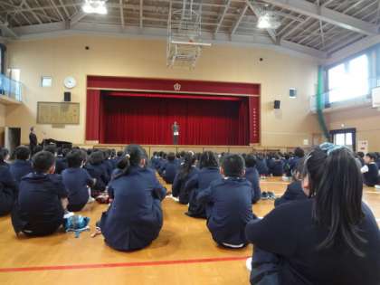 始業式では、校長先生が平成29年の漢字“北”を子どもたちに見せながら、「友だち同士話し合いながら仲良くする」というお話をしました。