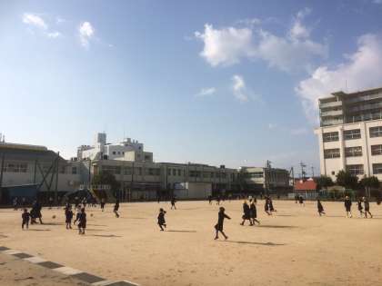今日は風が強かったものの、昨日からの雨も上がり、太陽の光が校庭を照らしていました。