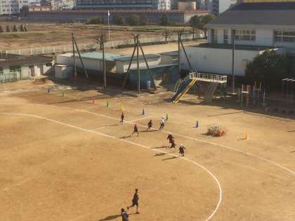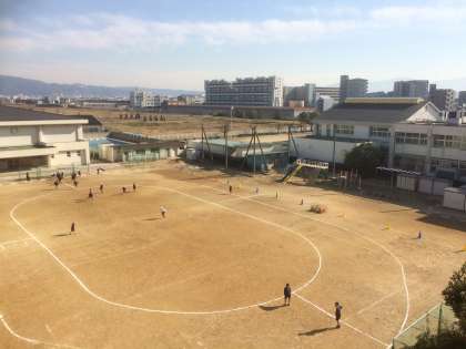ぬかるみに足を取られてけがをする心配があるため、午前中使用を見合わせ、お昼休みは運動場をコーンで仕切って、一部の使用を制限した上で開放しました。