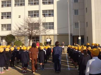 しっかり“あいさつ”できるように全校児童に呼びかけていました。
