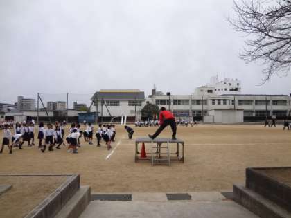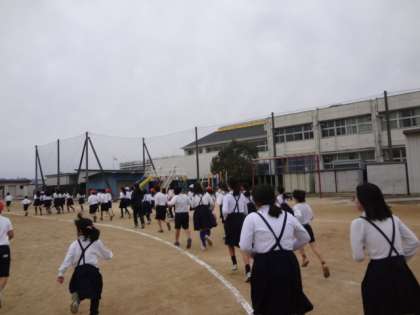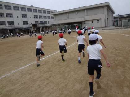 曇り空で少し肌寒い15分休みになりましたが、みな元気にトラックを走っていました。