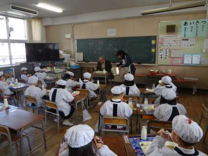 この期間に各クラスでいろいろな先生と交流給食をしています。