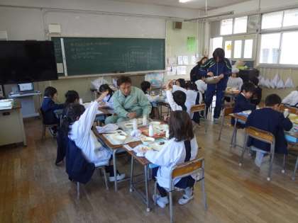 1年2組の交流給食は、管理作業員の畠山さんでした。