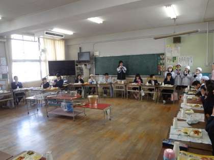 4年1組の交流給食は、給食調理員の久田さんでした。