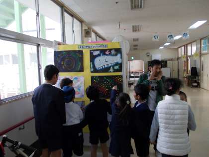 (長原小学校の各学年からも作品を展示していただき、作品交流をしています)