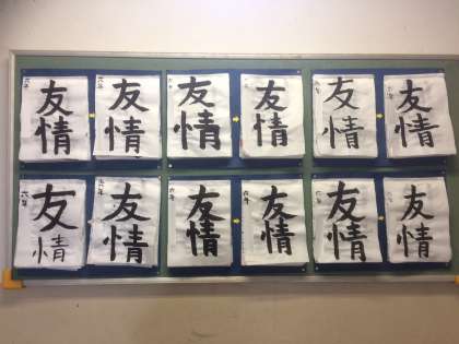 2月16日(金) 6年生の階段掲示は、習字“友情”です。