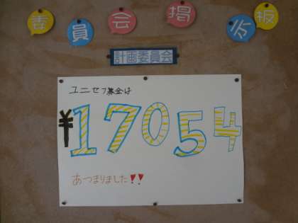先日行われた「ユニセフ募金」で、17,054円の協力があったことを計画委員が報告しました。募金はユニセフの方に送金されました。