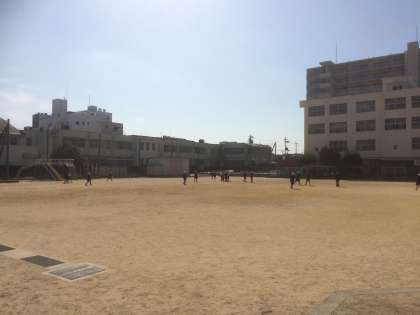 運動場全体を使ったおにごっこをしているクラスがあります。