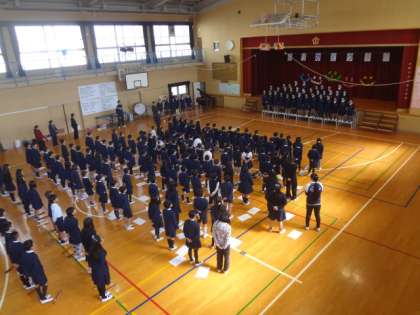 みんなの拍手の花道の間を通って、6年生が退場していきました。