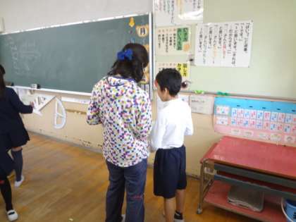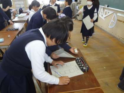 その後、シートを持ってアクティビティーに挑戦。友だちにシートを見せながら伝えていました。
