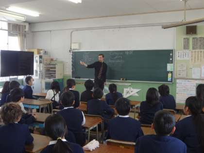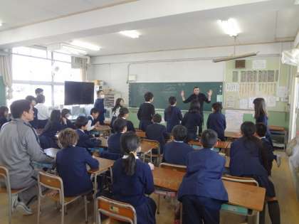 ダン先生が決めた種類のもの(スポーツや楽器など)を班ごとに英語で順番に言っていくゲームでした。班で知恵を出し合いながら生き残りにチャレンジしていました。