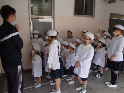 3日目になり、1年生の給食準備の動きがスムーズになってきました。