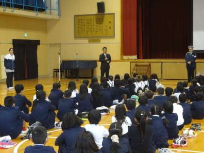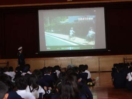 高学年は、自転車運転中の交通安全について指導してくださいました。