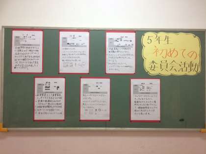 5年生の階段掲示は、今年度から始まる委員会活動です。