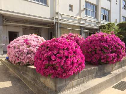 4月23日(月) 校庭横のツツジがみごとに満開です。