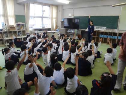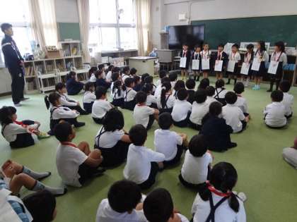 最初に低学年ワークルームで、リーダーさんたちから説明があり、その後、グループ内で自己紹介がありました。