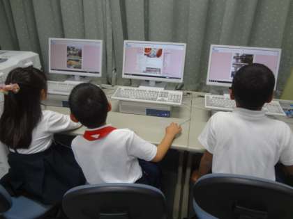 2年生が1年生を連れて学校内を探検し、1年生のいろいろのことを教えてくれました。
