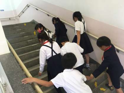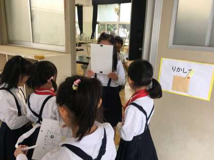 2年生が1年生と手をつないで、理科室・図書室など校内のいろんな所を回りました。