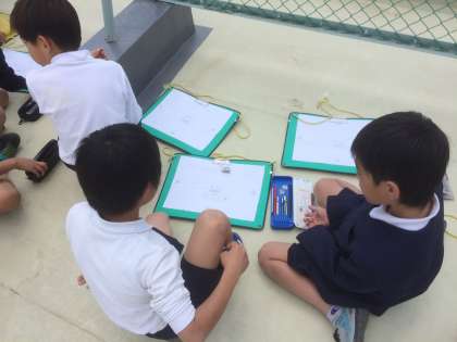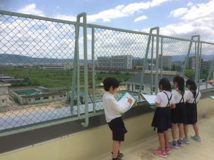 東西南北それぞれの方向をみて目印になるものをみつけ、それぞれ地図を完成していきました。