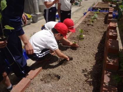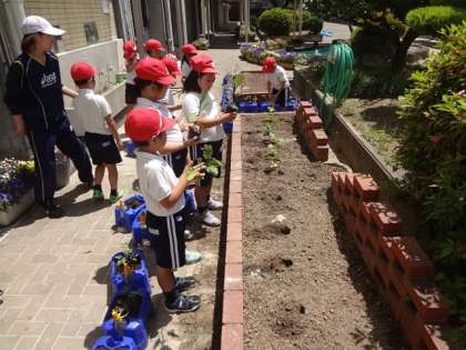 プチトマトを植えた後、花壇にナスなどの野菜の苗を植えました。