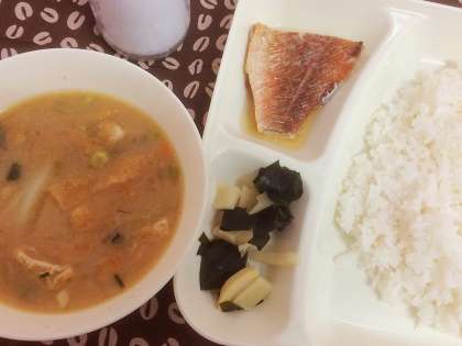 今日の給食では、たけのことわかめを煮た「わかたけ煮」です。たけのこを使った代表的な料理の一つです。