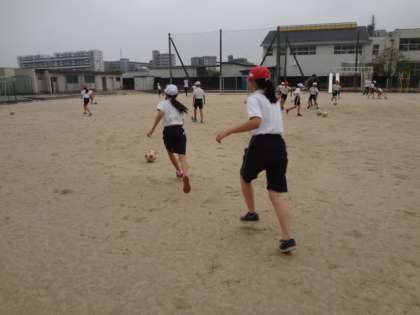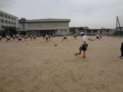 最初の1時間は基礎練習で、ドリブルやキックの練習を中心に行いました。