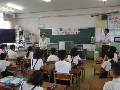 大阪市中央サポートセンターと警察の方が来られて、5年生の“非行防止教室”をしてくださいました。非行にはどのようなものがあるかなど、具体的な事柄についてわかりやすく説明してくださいました。ペープサートを使って、万引きをしないようにするために考えたりもしました。