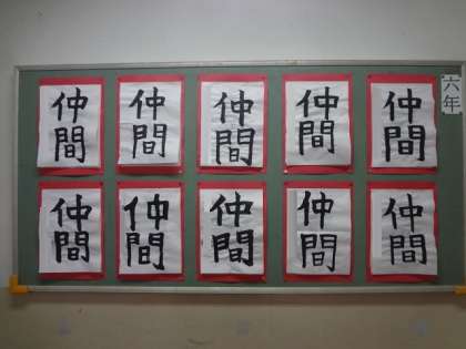6月6日(水) 6年生の階段掲示は、習字“仲間”です。
