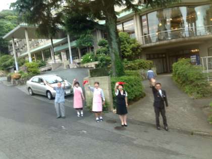 宿舎の方々は手を振り、バスを見送ってくださいました。