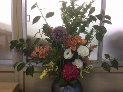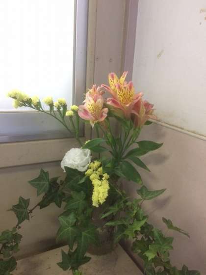 緑化推進委員の方が、美しい花を活けてくださいました。