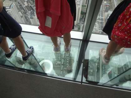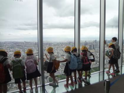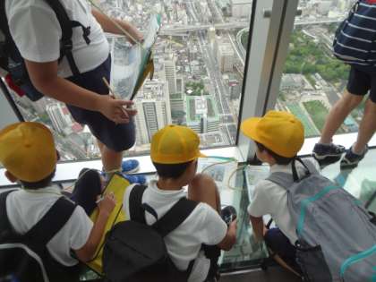足元がガラスで透けて見える場所もあり、少し怖がっている児童もいました。