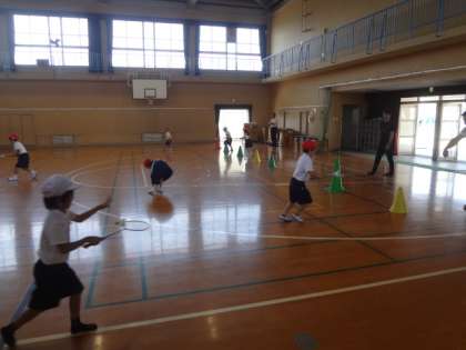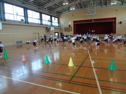 なれない低学年児童は、何度も羽を落としながら走りましたが、高学年児童がやさしくフォローしてあげていました。