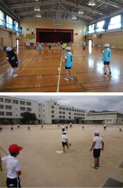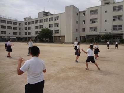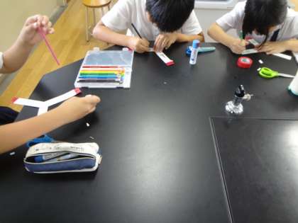 科学工作クラブでは、ブーメランを作って運動場で投げていました。
