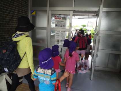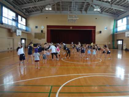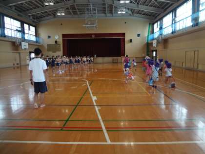 最初に園児が体育館で着替えた後、自己紹介をしたり、ラジオ体操をしたりしました。
