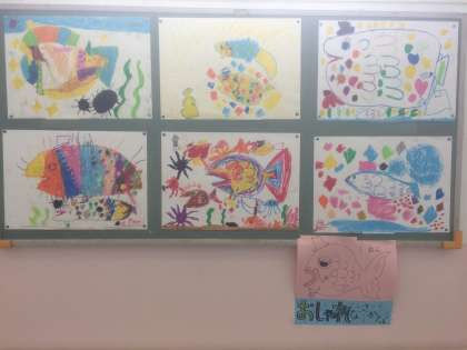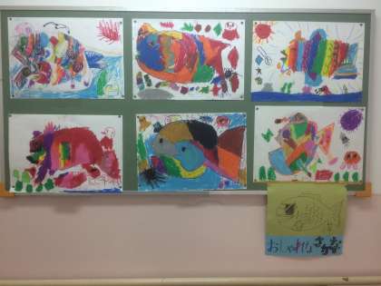 1年生の階段掲示は、“おしゃれなさかな”でした。