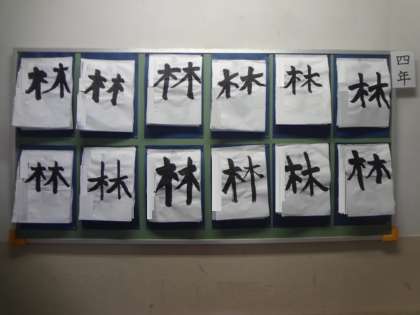 7月5日(木) 4年生の階段掲示は、習字“林”です。