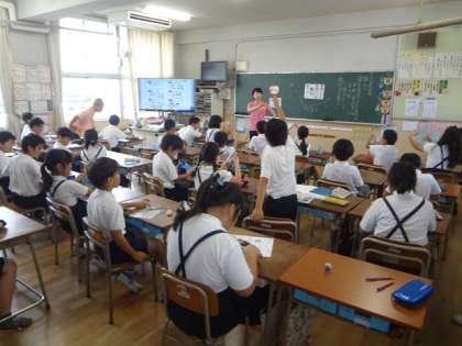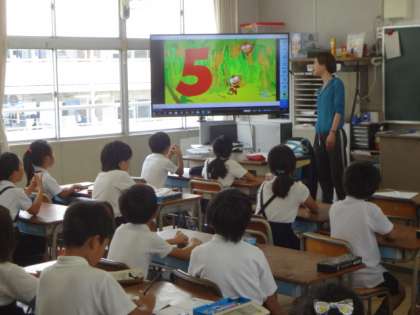 “Touch the color game(色にタッチするゲーム)”をしているクラスもあります。