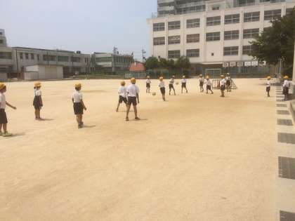 4時限目前の休み時間、とても暑い中、少しでも友だちと遊びたいと思う子どもたちが、チャイムとともに教室から下りてきて、運動場を走りまわっています。